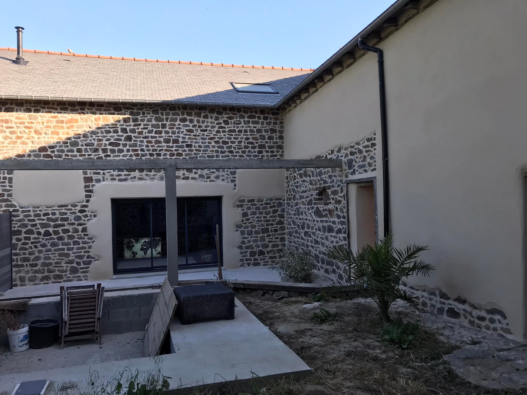 Nous réalisons également des enduits pierre vue intérieur brossé, permettant de conserver l’authenticité des murs tout en assurant leur consolidation. Ce type de finition met en valeur le caractère du bâti ancien et s’intègre parfaitement dans des projets de rénovation complète.